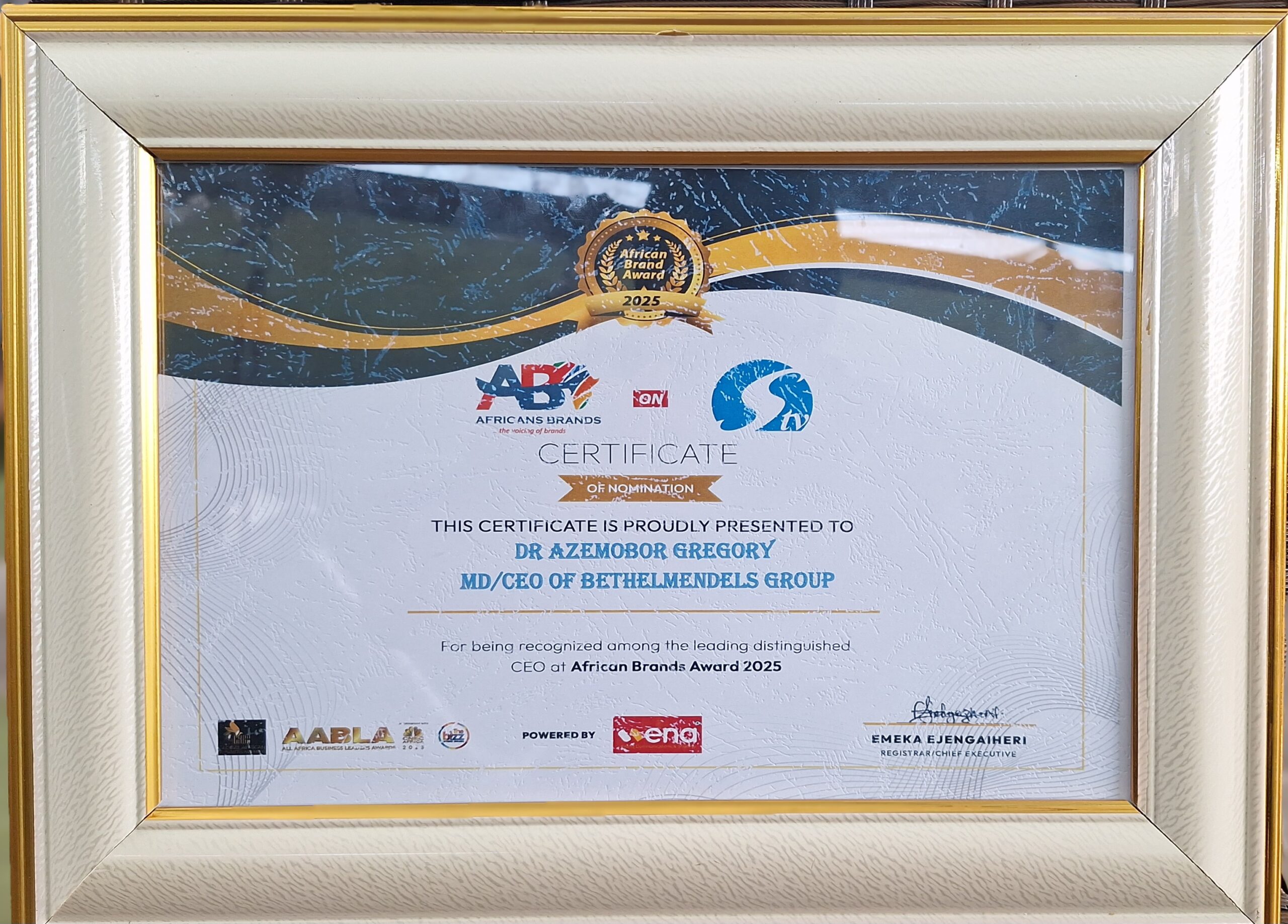 The Dr Azemobor Gregory African Brands Award 2025 is closely tied to the rapid growth of Bethelmendels Group.