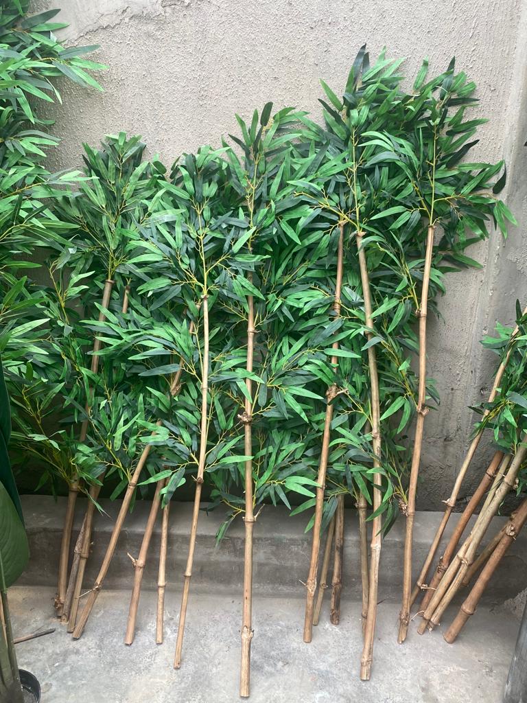 • Material: The leaves of synthetic bamboo plants are made from fabric materials, while branches are made from plastic, silk, and polyester and trunk is natural bamboo sticks. This makes it looks high-quality decorative accessories and feels realistic. At Bethelmendels we produce the best near to natural bamboo plants with little different from natural bamboo plants