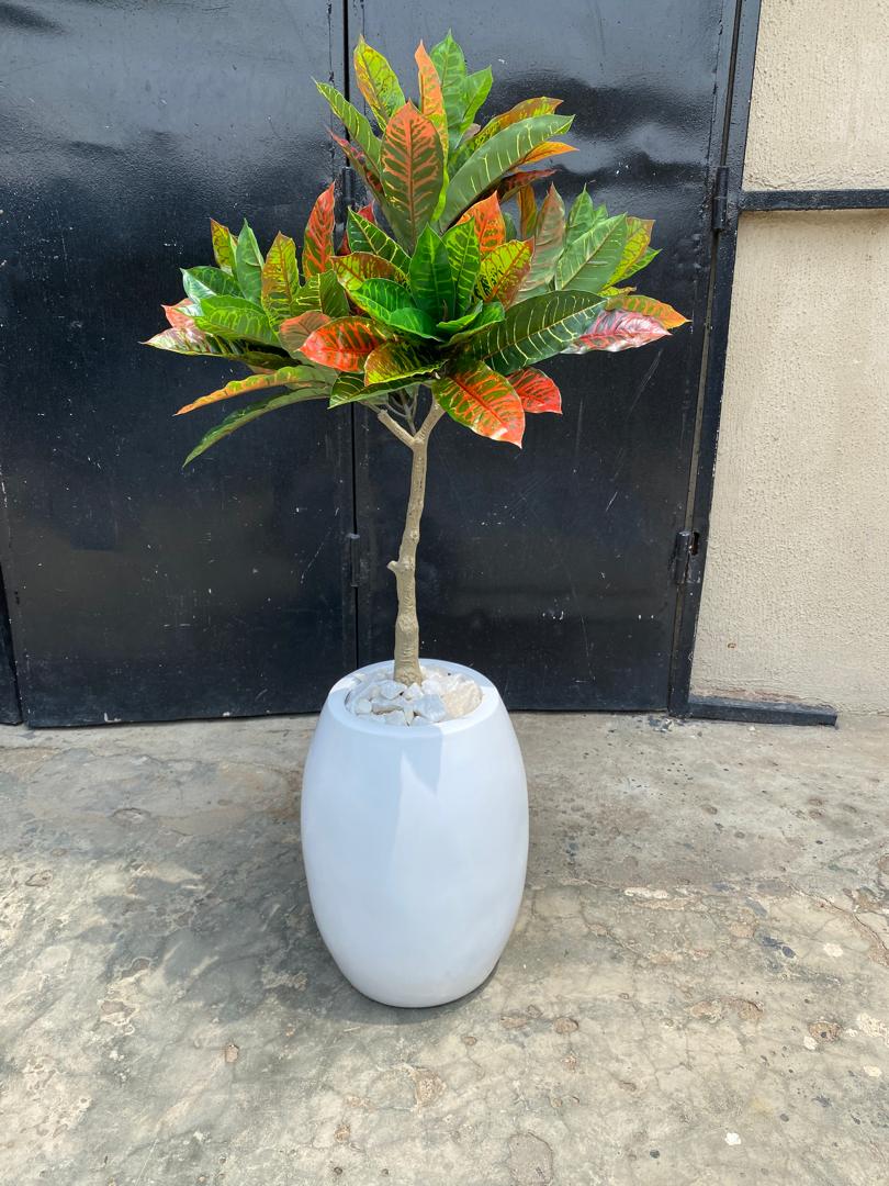 A banyan tree potted in a fiberglass pot not only serves as a beautiful focal point but also symbolizes longevity, strength, and tranquility. The banyan tree, with its broad, glossy leaves and potential for intricate root structures, creates a sense of calm and connection to nature. Its distinctive, sprawling form gives the tree an imposing yet graceful presence, even in a confined space like a pot.