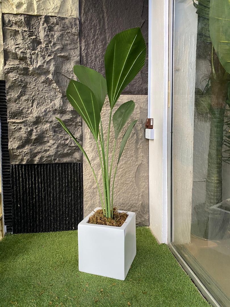 Artificial Fan Palm Potted With Square Fiberglass Vase | Height: 170cm