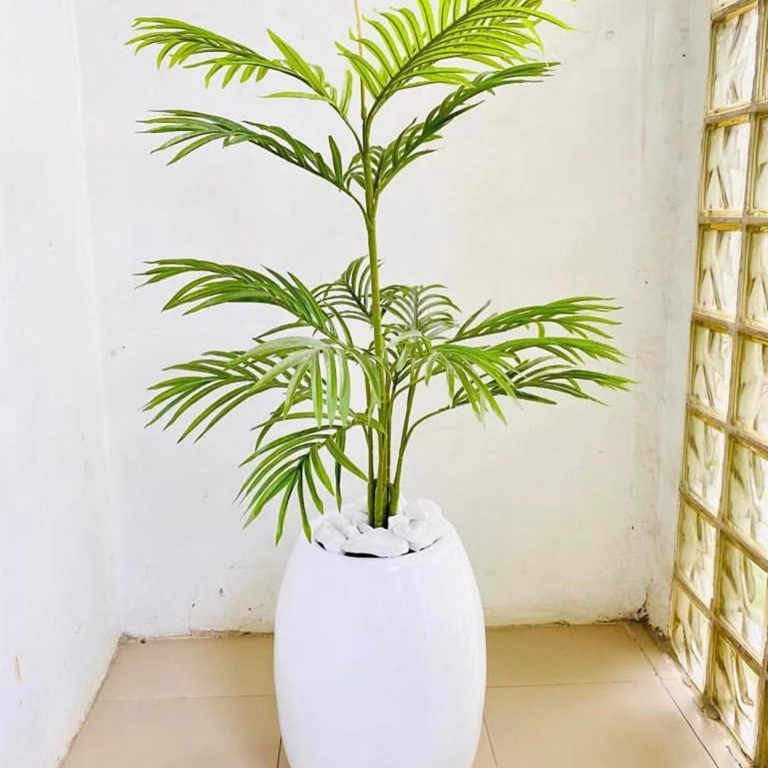 SEO Keywords: Artificial Single Stem Palm, Classic Fiberglass Vase, indoor artificial palm, low-maintenance plant décor, lifelike palm tree, artificial plant with vase, tropical indoor décor, modern home decor, fiberglass planter, realistic artificial palm
