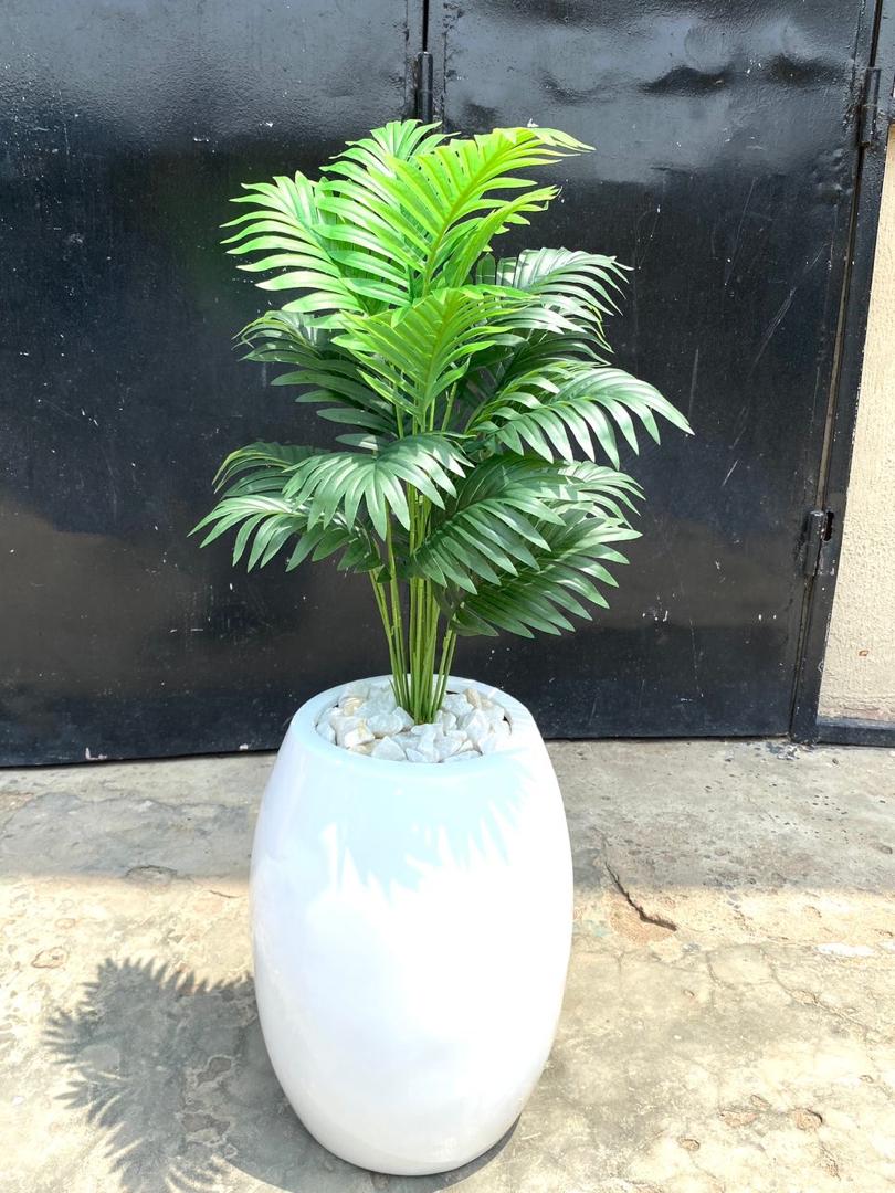 Transform your space with this beautiful Artificial Small Palm Potted in a Classic Fiberglass Vase, designed to bring life and freshness to any environment effortlessly.