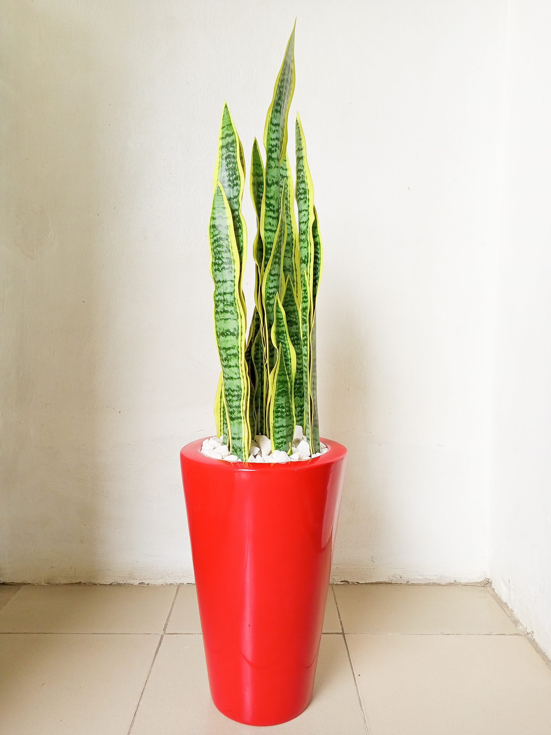Artificial Snake Plant Potted In A Red Cone Fiberglass Planter – 115cm Height