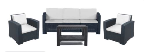 This beautifully designed, mid-backed, 5 Seater Lugano chairs delivers extra back support as well as comfort and style. Comprising a 3 seater, 2 singles, 1 centre tables(glass top not inclusive) and Backrest and seat cushions(Note: Throw Pillows NOT Inclusive). It is the ideal Living room, Bedroom,  garden furniture set for your home, decking or patio and it will complement any décor. Relax with friends or family and enjoy summer days with drinks and snacks and good conversation.