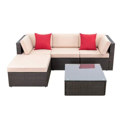 Walnew 5 Pieces Outdoor Rattan Sectional Sofa
