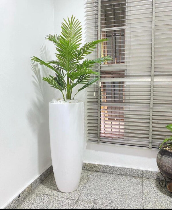 Palm plant potted with slim cylinder vase, This stunning combination offers a touch of tropical elegance, perfect for modern and contemporary interiors.