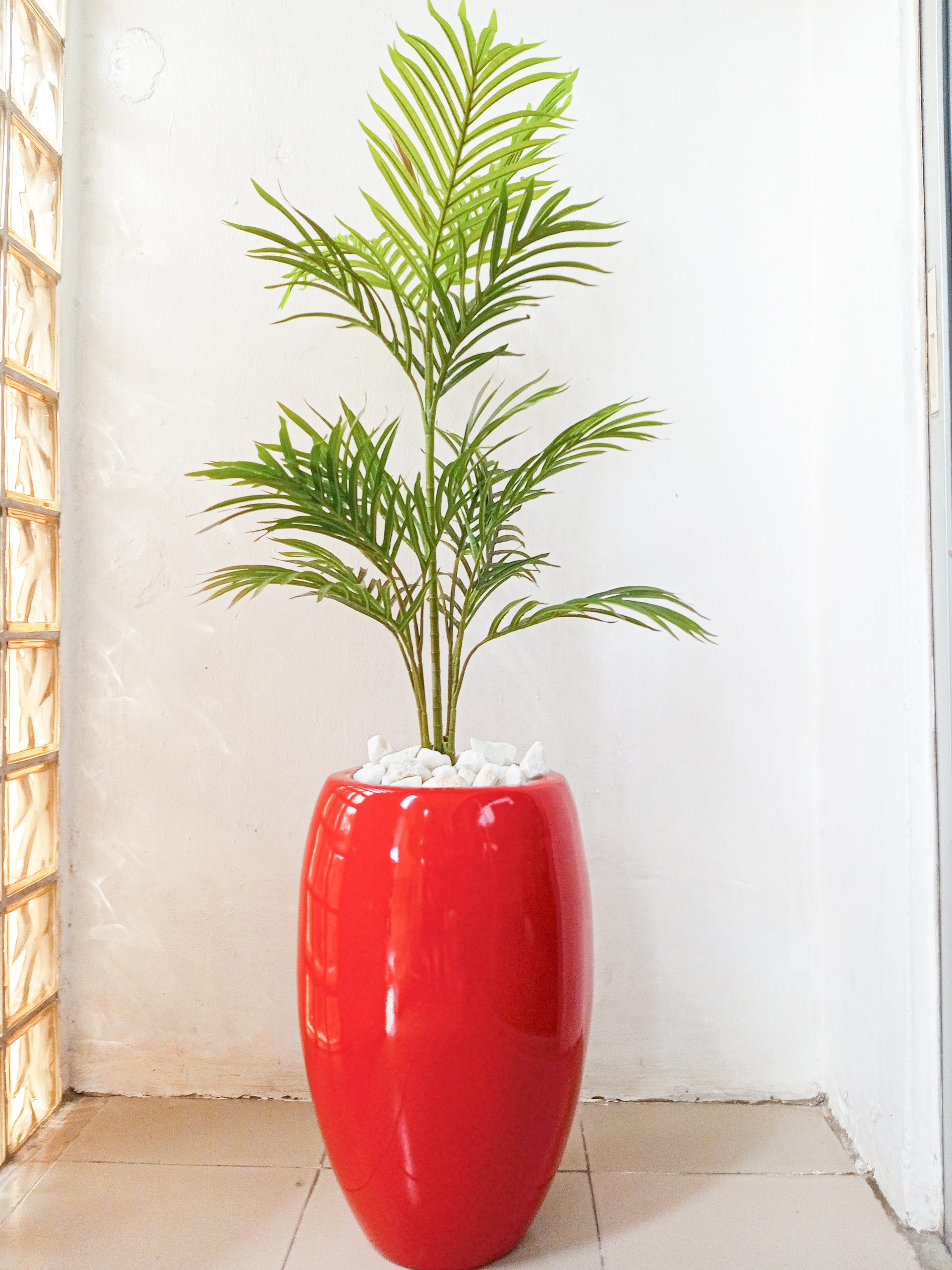 Potted Single Palm Plant With Red Fiberglass Pot – Height 150cm