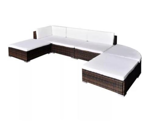 This Rattan Garden Sofa Set is a perfect combination of style and functionality and will become the focal point of terrace, garden or patio. The rattan lounge set is designed to be used outdoors year-round. Thanks to the weather-resistant and waterproof PE rattan, the lounge Rattan Garden Sofa Set is easy to clean and hardwearing and is suitable for daily use. The seat features a sturdy, powder-coated steel frame and rust-resistant chrome feet. The thick removable seat and back cushions with vertical fibre cotton filling offer ultimate seating comfort. The easy-to-clean polyester covers with concealed zips can be removed and washed. The lightweight, modular Rattan Garden Sofa Set is very flexible and can be easily moved around to suit any setting! Delivery includes 1 corner seat, 2 seats with backrest, 2 stools, 1 fan shape stool, 6 seat cushions, and 4 back cushions. Please Note: We recommend covering the set in the rain, snow and frost.