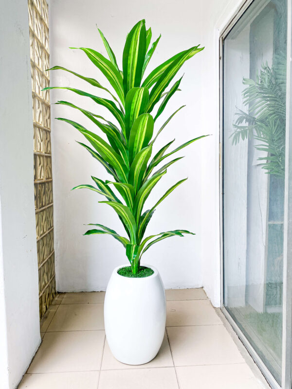 The 50cm classic fiberglass pot complements the Dracaena’s vertical form with its understated elegance and durability. Crafted from high-quality, lightweight fiberglass, this pot is built to withstand the elements, making it suitable for both indoor and outdoor use. The classic design, with clean lines and a polished finish, adds a sense of balance and sophistication, allowing the plant’s natural beauty to take center stage.