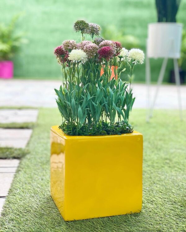 Introducing a captivating blend of nature’s elegance and contemporary design. Our exquisite vine flowers, meticulously arranged in a sleek 20x20cm square fiberglass planter, are a stunning addition to any indoor or outdoor setting.
