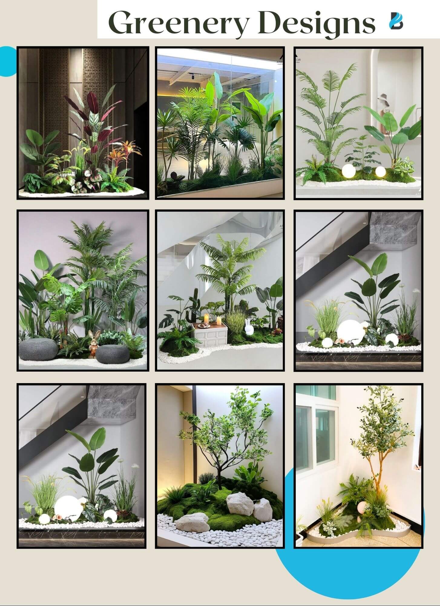 Artificial interior greenery ensures consistency across spaces such as offices, hotels, and retail environments. It allows designers to achieve a natural look while maintaining long-term durability and cleanliness.