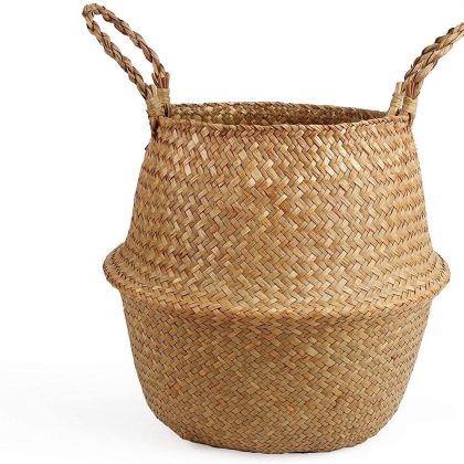 Hand Knitting Flower Basket Woven Belly Storage Basket Seagrass Flowerpot
