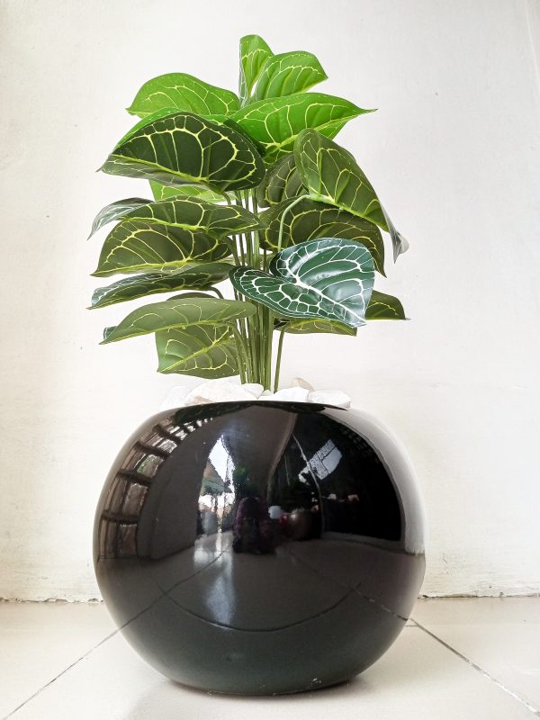 Artificial Taro Mini Potted Plant With Black Ball Shape Fiberglass Pot – 75cm in Height