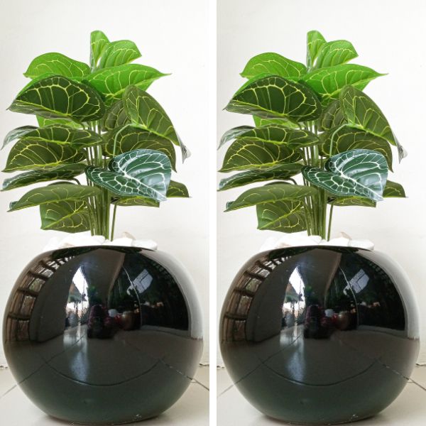 The Round Ball Fiberglass Vase Potted with Artificial White Taro Plant is a striking decor piece that combines modern design with the elegance of lifelike greenery. The vase, crafted from high-quality fiberglass, features a smooth, round ball shape that complements any contemporary interior. The artificial white taro plant inside is carefully designed to mimic the beauty of real taro leaves, with their broad, vibrant structure and distinct color. This decorative plant requires no watering or upkeep, making it a perfect, hassle-free way to bring fresh, bold greenery into your living space or office.