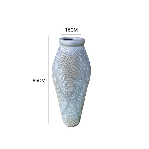 SERENO FIBERGLASS VASE is an elegant decorative fiberglass planter that brings sophisticated style to any space. Standing 85 cm tall with a 16 cm top diameter, it features a slender, graceful silhouette that complements both modern and classic interiors. The textured surface adds visual depth, while the narrow mouth design is ideal for showcasing tall plants or floral arrangements.