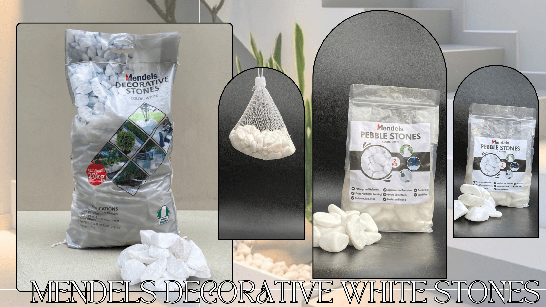 With their clean appearance and natural texture, these stones bring balance, brightness, and structure to any environment. Available in 20kg, 3kg, and 2kg sizes, White Mendels Stones offer flexible options for projects of every scale.